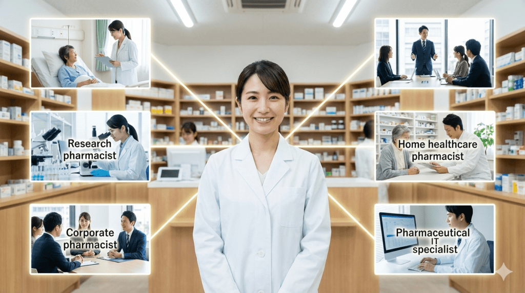 【未経験向け】薬局薬剤師ってどんな仕事?―仕事内容・将来性・働いてみた感想・激務と言われる理由を現役薬剤師が徹底解説! 薬局薬剤師に興味はあるけど、実務実習からしばらく時間が経過していて、 薬局未経験 私にできるかな… 薬局未経験 最近の薬局がどんな環境なのか、よくわからないな… と不安になっていませんか。 薬局薬剤師の仕事は近年で大きく変化しているので、実務実習を受けた頃のイメージとかなり変わってきている可能性が高いです。外来対応が中心の薬局もあれば、在宅医療を軸に動いている薬局もあり、同じ「薬局薬剤師」でも、日々行っている業務や求められる役割は大きく異なります。そのため、求人を見ても働くイメージがわかず、なんとなくで決めてしまうとイメージとのミスマッチが起きてしまいます。 私は薬局薬剤師として5年以上勤務し、現役で現場に立っています。これまでに10局を超える現場を見てきた経験から、制度や時代の変化によって、薬局薬剤師の働き方がどのように変わってきたのかを肌で感じてきました。 この記事では、薬局薬剤師の仕事内容の全体像と、近年起きている変化、そして今後の将来性について整理します。読むことで、仕事内容の概要や業界動向を理解でき、自分にできるかどうかの判断材料を得ることができます。 もくじ この記事の結論 薬局には様々な仕事があるが、対人業務をメインにするように国から求められている。実際の薬局は「外来メイン」から「在宅専門」まで様々で、置いてある設備も異なり、仕事内容の比重・負担感は職場によって大きく異なる。将来的には「管理薬剤師」「コンサル」「エリアマネージャー」など。「対人業務への移行」「立ち仕事」「クレーマー対応」「重い責任」「人間関係」がきつい。事前調査を徹底し、自分に合った職場を探そう。 薬局薬剤師の主な仕事内容 調剤業務 調剤業務は、薬局薬剤師の基本的な業務のひとつで、処方箋の指示に従って、薬を用意する工程全般を指します。 調剤業務は、薬局薬剤師の基本となる業務ですが、実際の仕事内容や負担は職場によって大きく異なります。 機械化が進み、全自動分包機や水剤調製機が整っている薬局もあれば、いまだに多くの工程を手作業で行っている薬局もあります。そのため、同じ処方枚数であっても、薬剤師の体感的な忙しさには大きな差が生まれます。 設備の違いは、働きやすさに影響します。 また近年では、従来は病院で行われていた業務が、薬局に移ってきている点も見逃せません。代表的なのが、麻薬混注や経管栄養に関わる調剤業務です。 在宅医療の普及に伴い、・麻薬注射薬の無菌調製・経管栄養剤の選択・調製といった、より専門性と慎重さを求められる調剤が、薬局でも行われるようになっています。 国の方針で、無菌調剤を行う薬局が増えてきているよ もちろん、すべての薬局がこうした業務を行っているわけではなく、外来中心で比較的シンプルな調剤にとどまっている薬局も少なくありません。 このように、調剤業務は「どんな薬局で働くか」によって、求められるスキルや働き方が大きく変わる業務だと言えます。 監査 監査業務は、薬局薬剤師の業務の中でも、特に責任が重く、精神的な負荷が大きい業務のひとつです。 調剤された薬剤が患者さんの手に渡る直前に行われるため、ミスが直接患者さんの不利益につながります。 本来、調剤を行う薬剤師と監査を行う薬剤師が分かれている体制が望ましいとされているのですが、実際には、同一薬剤師が調剤から監査まで行うケースや、調剤の一部を事務が担っている薬局も少なくありません。 その場合、最終的な安全確認を担う監査は、より重要なものとなります。 法令上、ピッキングは事務さんがやってもOKです。 また、監査業務の中でも特に負担が大きいのが一包化の監査です。 PTP包装薬ではバーコードによる確認が可能な薬局がほとんどですが、一包化の場合は目視確認が中心となり、在宅や施設対応では膨大な量を長時間かけて監査することもあります。 また、現時点では少数派ですが、一包化監査を補助する全自動監査機を導入している薬局もあります。 こうした設備の有無は薬剤師の負担や働きやすさに大きく影響します。 監査業務はミスが許されない一方で、人が行う以上、集中力や体調によってリスクが完全にゼロになることはありません。 だからこそ、業務量や体制、設備面まで含めて職場を見極めることが、薬局薬剤師にとって非常に重要になります。 服薬指導・患者対応 服薬指導や患者対応は、個人差が最も出やすい業務です。 なぜなら、薬学的に正しい説明が、そのまま患者さんにとって最適な説明になるとは限らず、「正解」が存在しないからです。 たとえば、実例として、 患者さん この新しい薬は強いんですか? と言われたケースを考えてみましょう。 ここで、患者さんがどのような感情や気持ちを持って発言しているのかを
